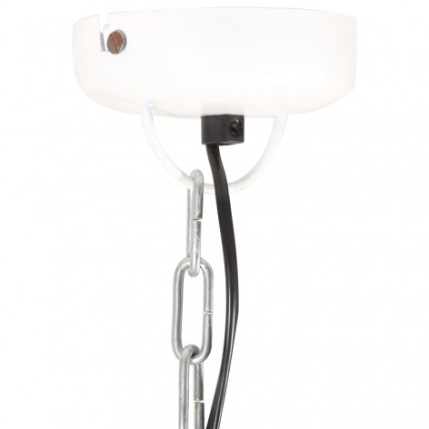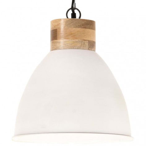 Lampadario Industriale Bianco Ferro e Legno Massello 46 cm E27