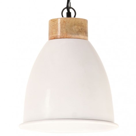 Lampadario Industriale Bianco Ferro e Legno Massello 23 cm E27