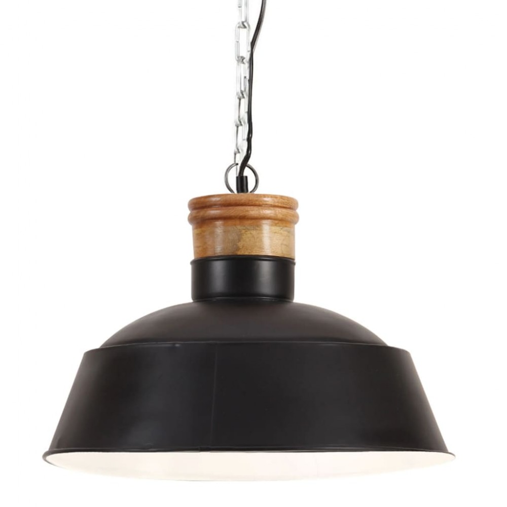 I paralumi in ferro, caratterizzati da una finitura nera opaca e legno massello di mango con una finitura naturale, si adatteranno perfettamente a un interno rurale o industriale. La plafoniera ha un attacco E27 per una lampadina di massimo 25 watt. Potete scegliere e installare lampadine E27 con vari colori della luce, creando un'atmosfera di relax e riposo. Nota: Questa è una lampada in stile industriale con imperfezioni al paralume, che conferiscono l'identità alla lampada e la rendono unica con il suo aspetto ruvido. Le lampadine non sono incluse.