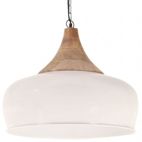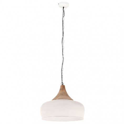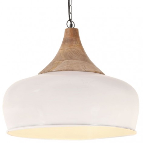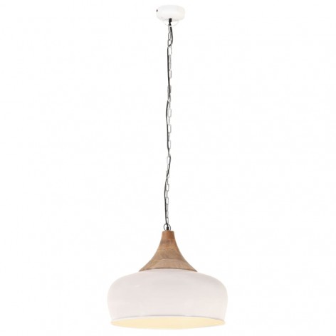 Lampadario Industriale Bianco Ferro e Legno Massello 45 cm E27