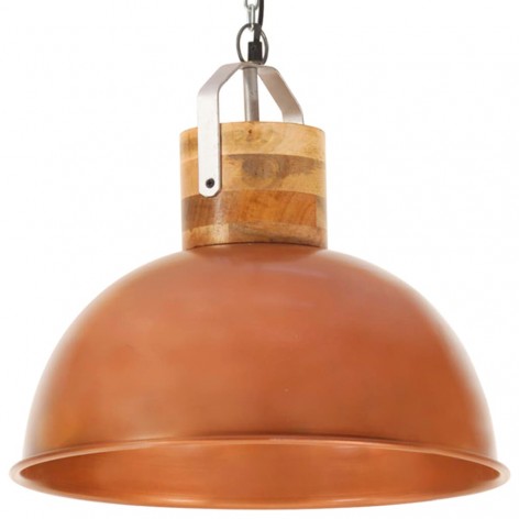 Lampada Soffitto Industriale Rame Rotonda 42 cm E27 Legno Mango