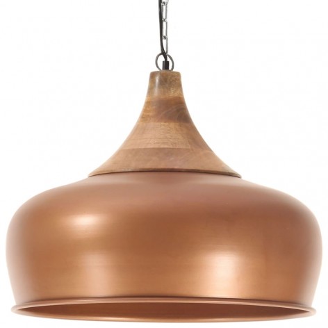 Il paralume, realizzato in ferro con rivestimento in rame e legno massello di mango con finitura naturale, si adatta perfettamente a interni in stile rurale o industriale. Il legno della lampada a sospensione rende questo prodotto ancora più accogliente nella vostra casa. La plafoniera ha un attacco di tipo E27 per lampadine di massimo 25 watt. Potete scegliere e installare lampadine E27 di colori diversi, creando un'atmosfera ideale per il relax e il riposo.
