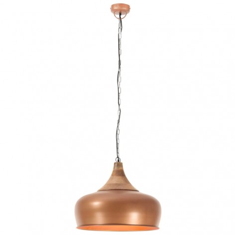Lampadario Industriale Rame Ferro e Legno Massello 45 cm E27