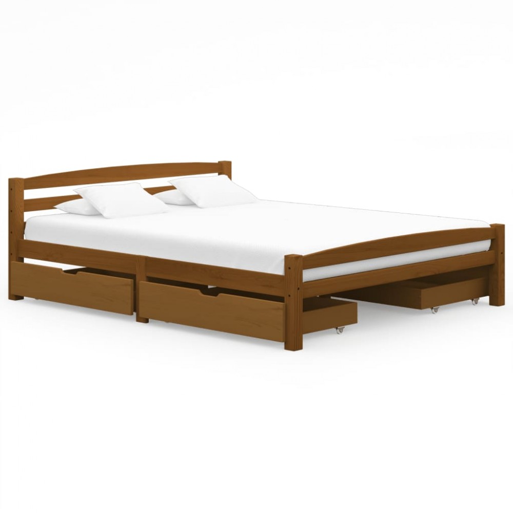 Giroletto con 4 Cassetti Miele Legno Massello di Pino 160x200cm