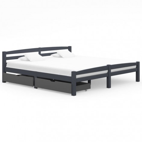 Giroletto con 2 Cassetti Grigio Scuro Massello Pino 180x200 cm