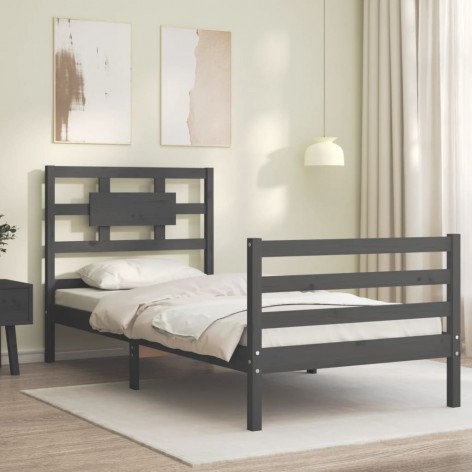Giroletto con Testiera Grigio Single in Legno Massello