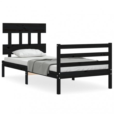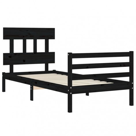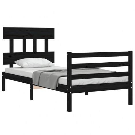 Giroletto con Testiera Nero 100x200 cm in Legno Massello
