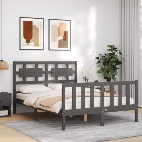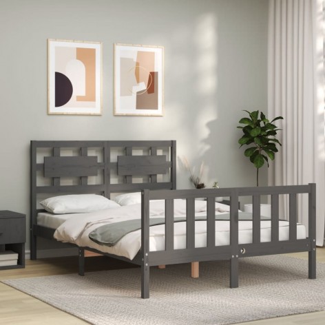 Giroletto con Testiera Grigio 120x200 cm in Legno Massello