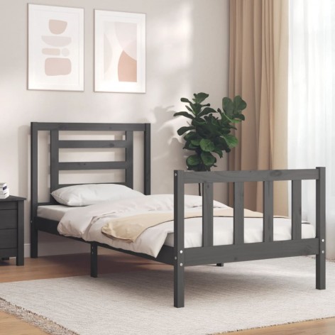 Giroletto con Testiera Grigio 3FT Single in Legno Massello