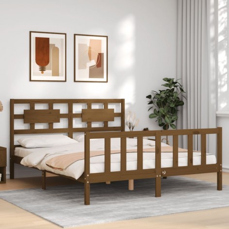 Giroletto con Testiera Miele 160x200 cm Legno Massello