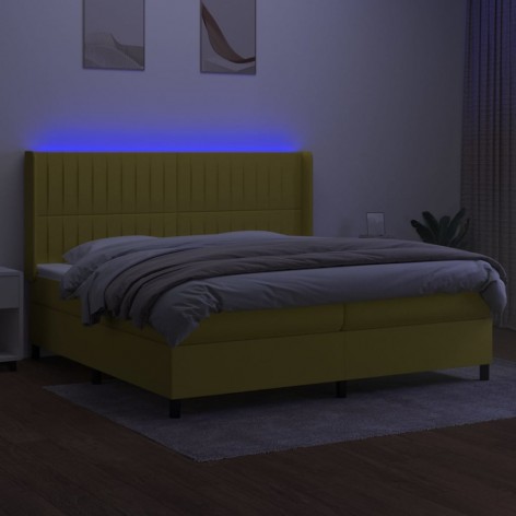 Letto a Molle Materasso e LED Verde 200x200cm in Tessuto