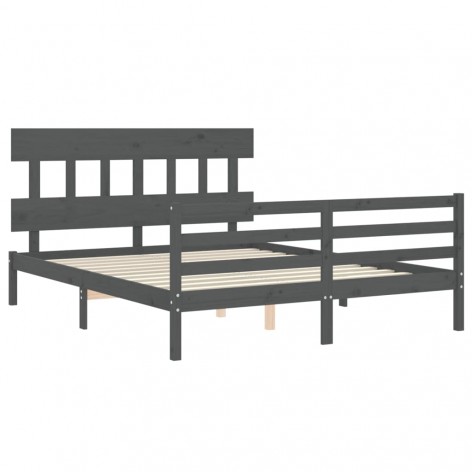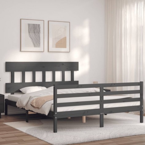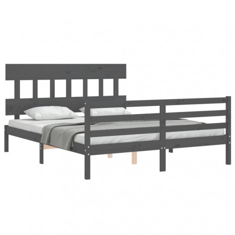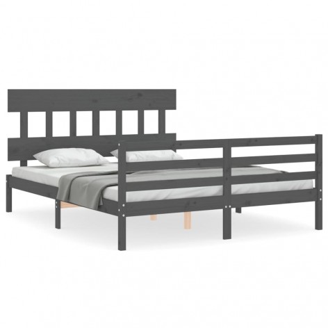 Giroletto con Testiera Grigio 160x200 cm Legno Massello