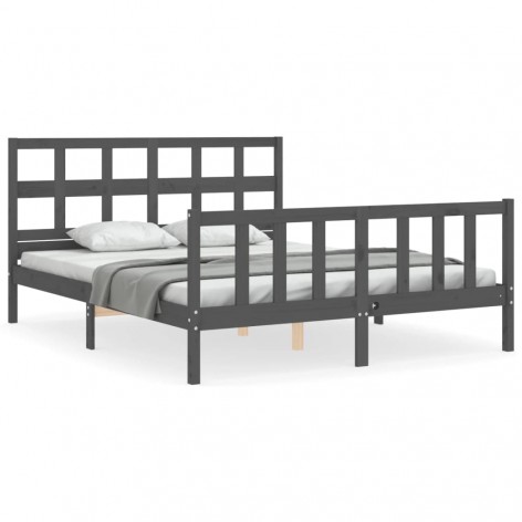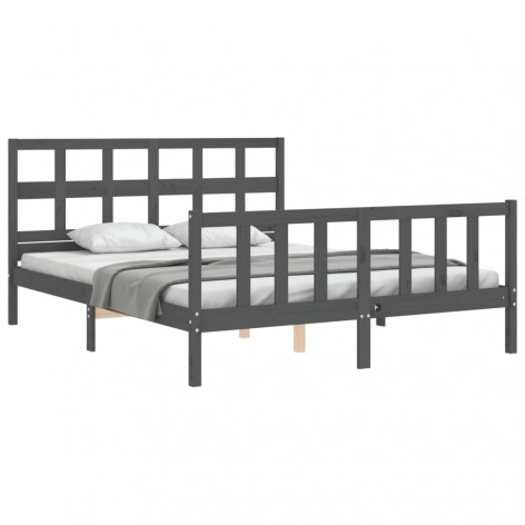 Giroletto con Testiera Grigio 160x200 cm Legno Massello