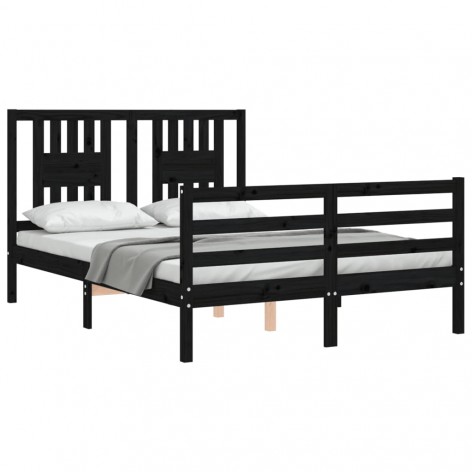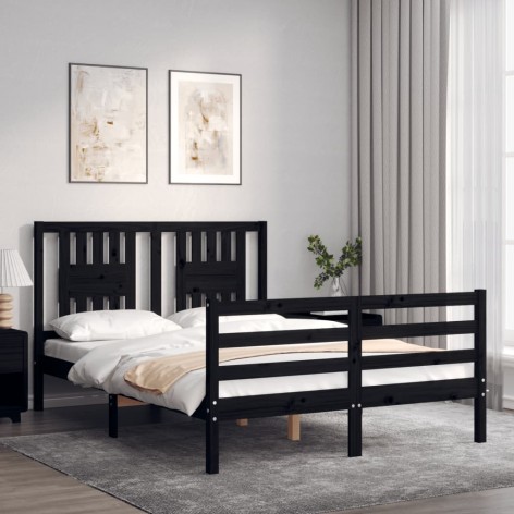 Giroletto con Testiera Nero 140x200 cm in Legno Massello