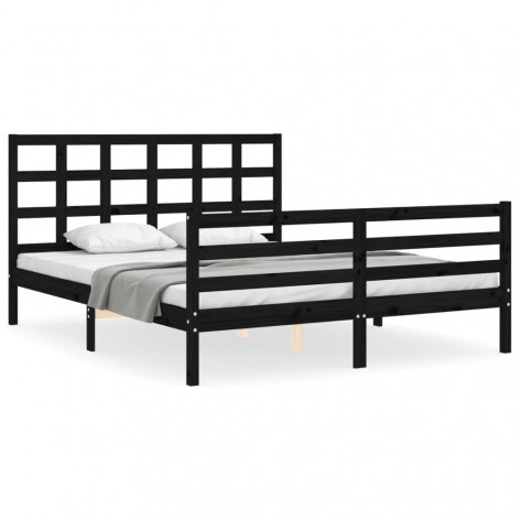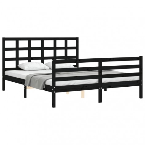 Giroletto con Testiera Nero 160x200 cm Legno Massello