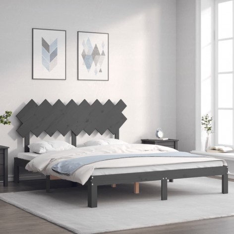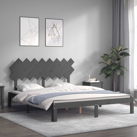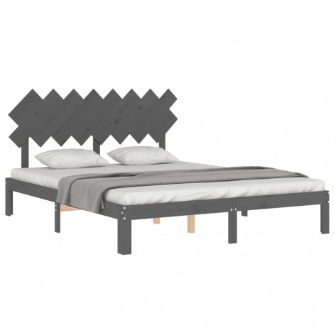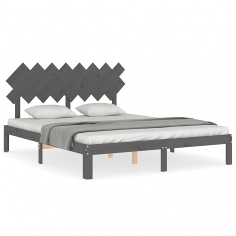 Giroletto con Testiera Grigio 160x200 cm Legno Massello