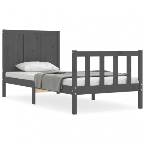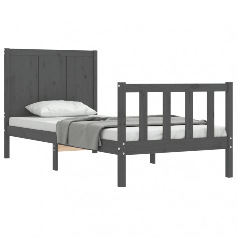 Giroletto con Testiera Grigio 90x200 cm in Legno Massello