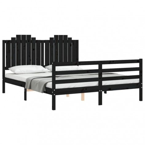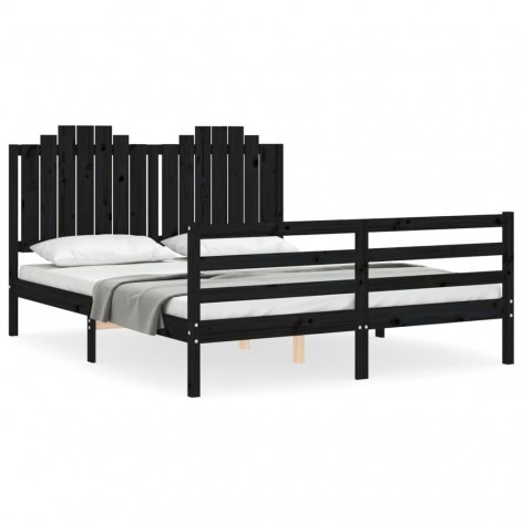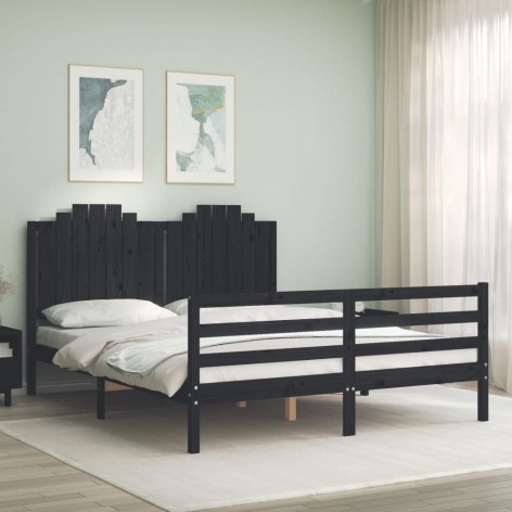 Giroletto con Testiera Nero 160x200 cm Legno Massello