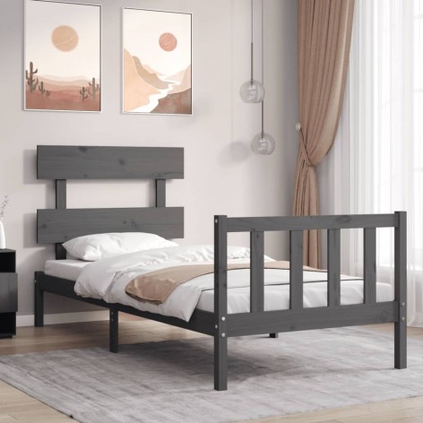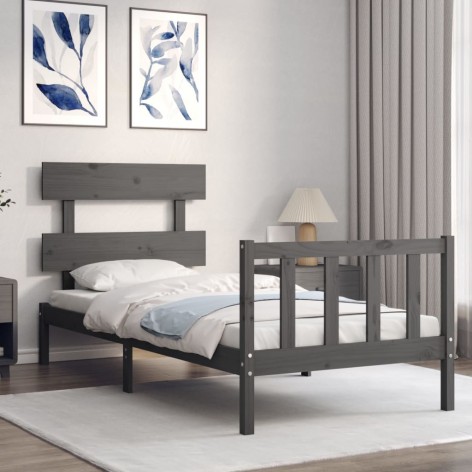 Giroletto con Testiera Grigio 3FT Single in Legno Massello
