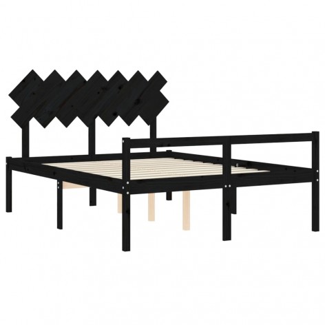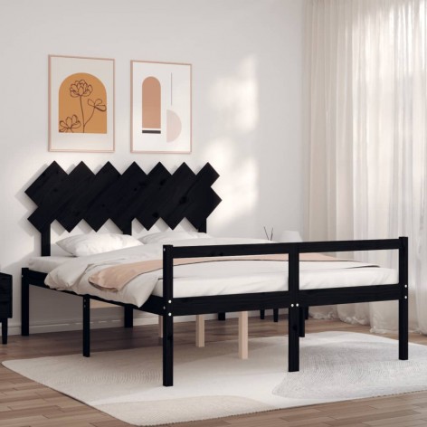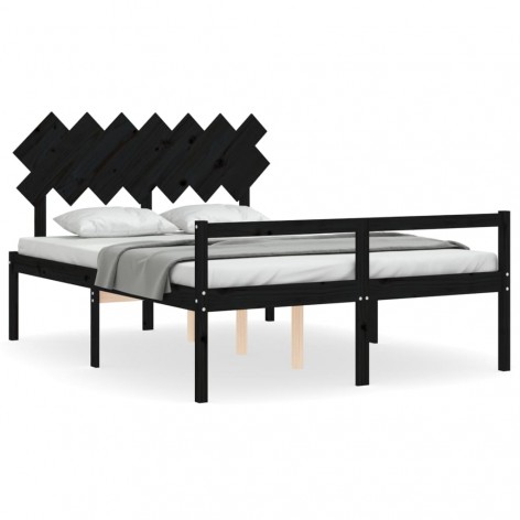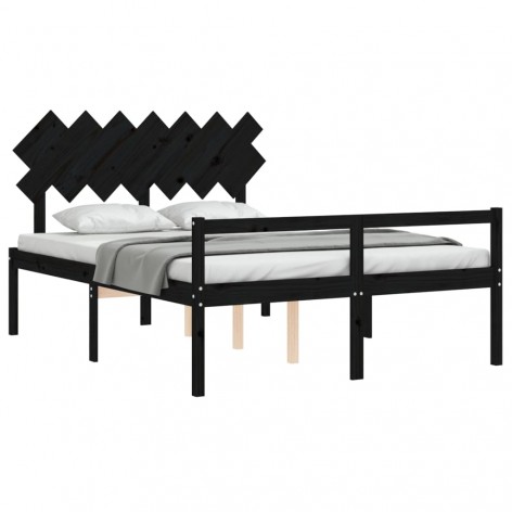 Giroletto con Testiera Nero 140x190 cm in Legno Massello