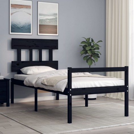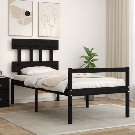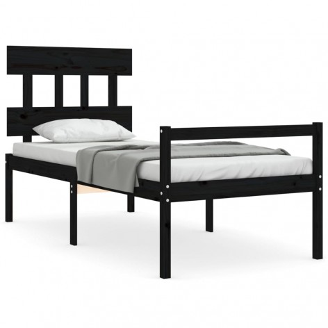 Giroletto con Testiera Nero 3FT Single in Legno Massello