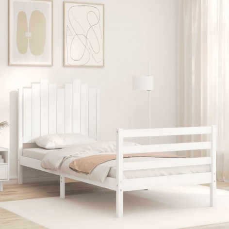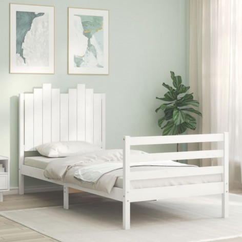 Giroletto con Testiera Bianco 90x200 cm in Legno Massello