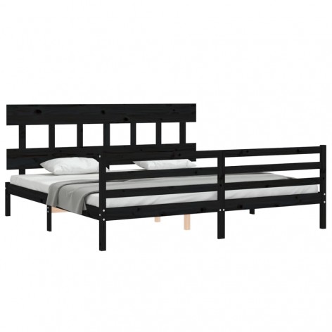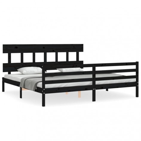 Giroletto con Testiera Nero 200x200 cm in Legno Massello