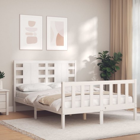 Giroletto con Testiera Bianco 140x190 cm in Legno Massello
