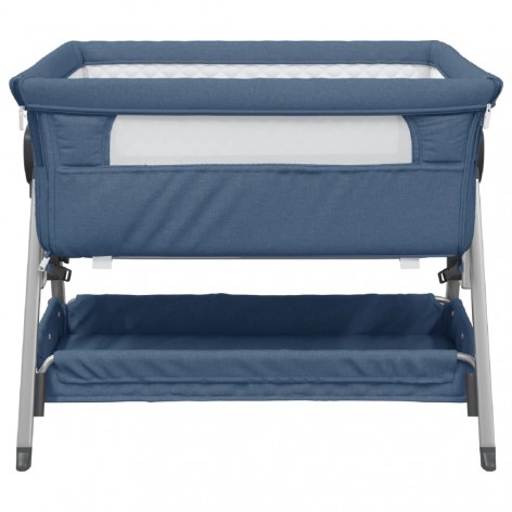 Lettino per Bambini con Materasso Blu Marino in Tessuto di Lino