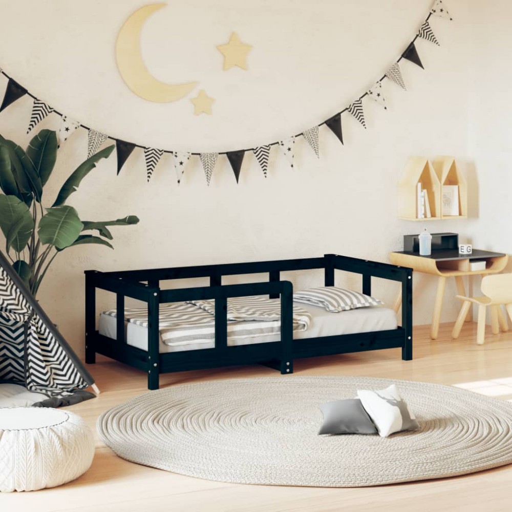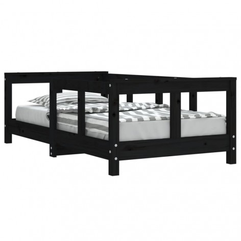 Giroletto per Bambini Nero 70x140 cm in Legno Massello di Pino