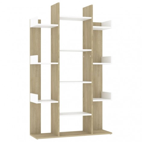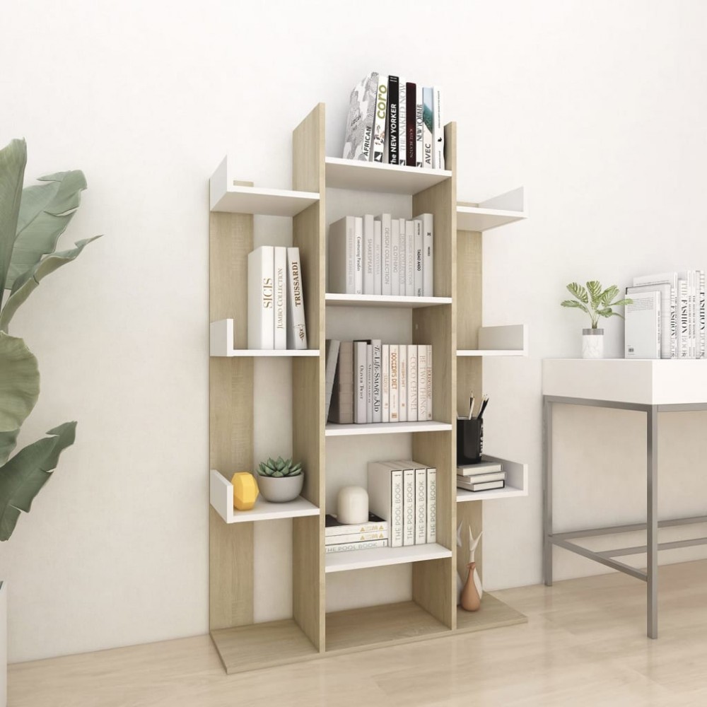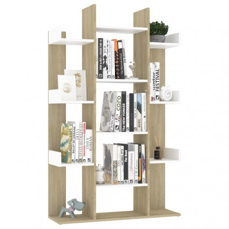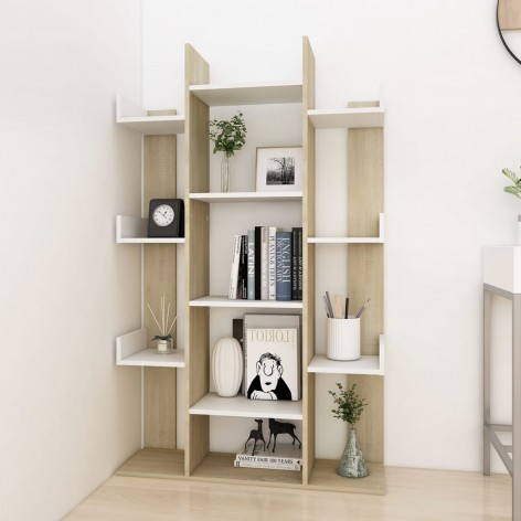 Libreria Bianca e Rovere Sonoma 86x25,5x140 cm in Truciolato