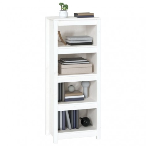 Libreria Bianca 50x35x125,5 cm in Legno Massello di Pino