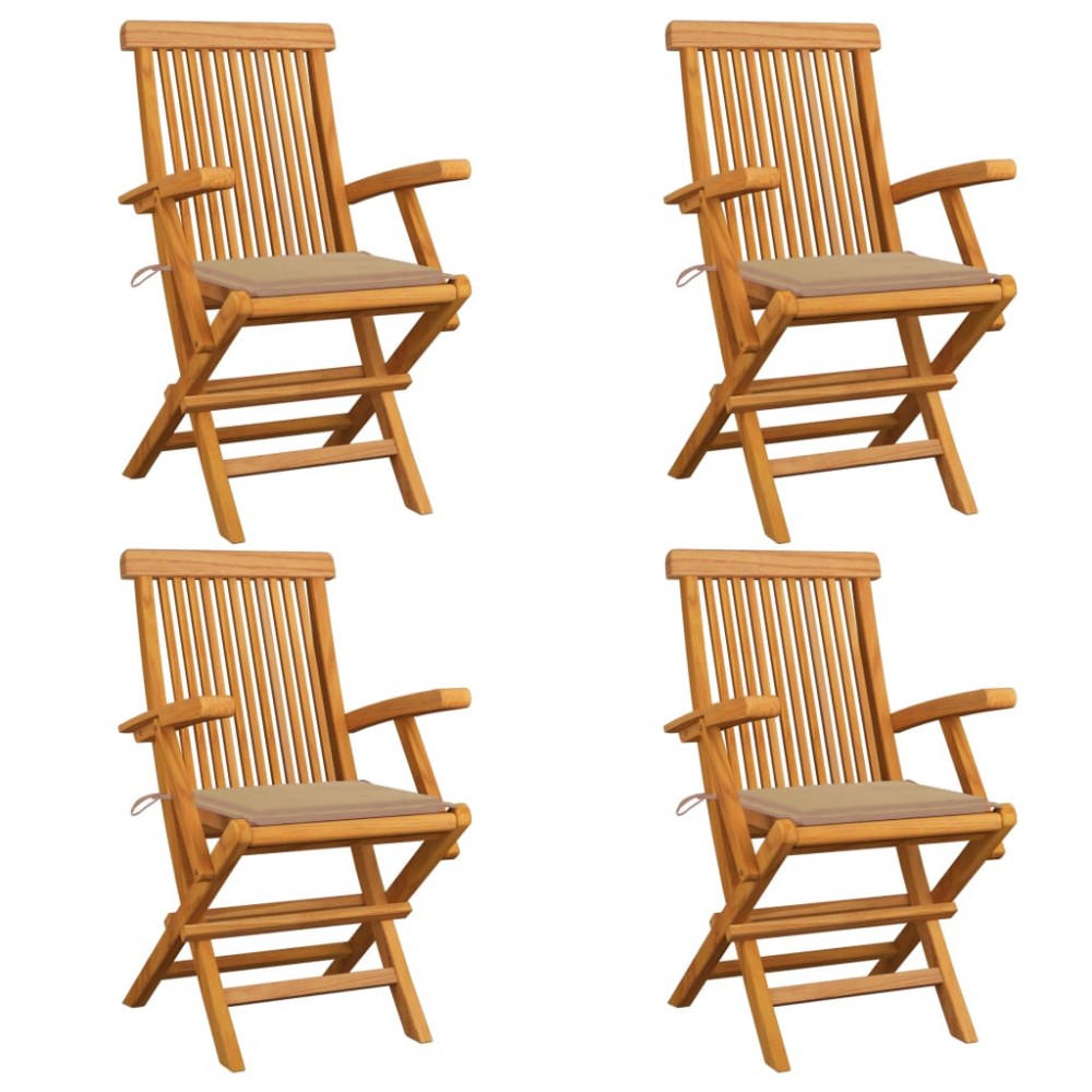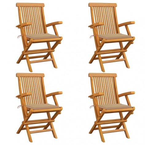 Sedie da Giardino con Cuscini Beige 4 pz Massello di Teak