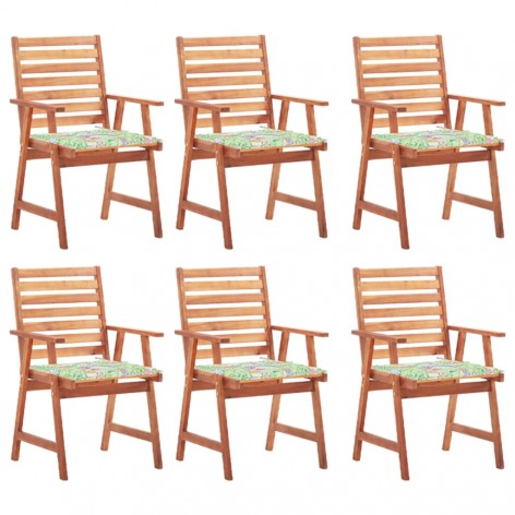 Sedie da Pranzo da Esterni con Cuscini 6 pz Massello di Acacia