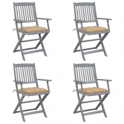 Sedie da Giardino Pieghevoli 4pz con Cuscini in Massello Acacia