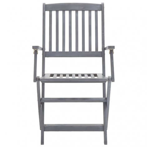 Queste sedie da pranzo sono realizzate in legno massello di acacia, un legno tropicale, che le rende resistenti agli agenti atmosferici e durevoli per anni di utilizzo. Il legno massello di acacia ha la forza di sopportare il peso e di resistere all'usura del tempo. La superficie grigio slavato è facile da pulire con un panno umido. Le sedie possono essere piegate per risparmiare spazio quando non vengono utilizzate. Inoltre, i cuscini inclusi offrono un comfort extra mentre ci si rilassa o si pranza. Ogni cuscino è dotato di due set di corde per poter essere fissato saldamente alla sedia.