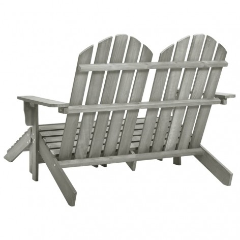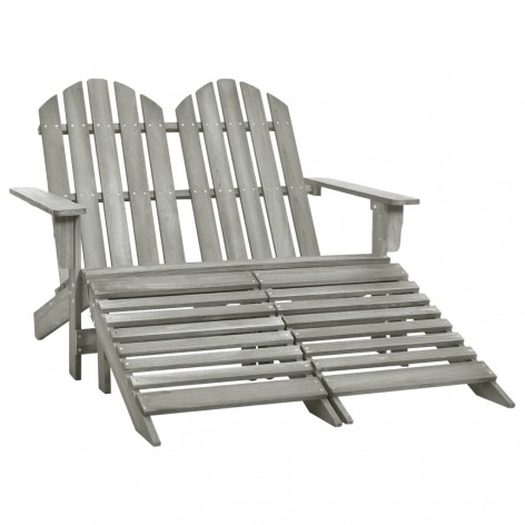 Sedia 2 Posti Adirondack con Ottomana in Abete Massello Grigio