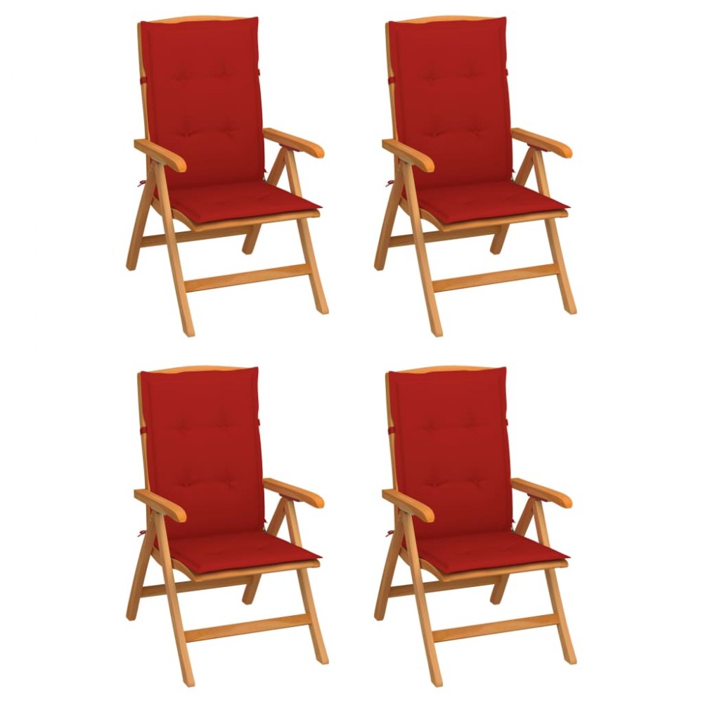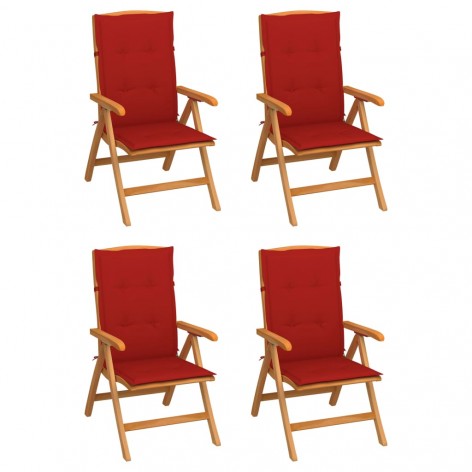 Sedie Reclinabili da Giardino con Cuscini 4 pz Massello di Teak