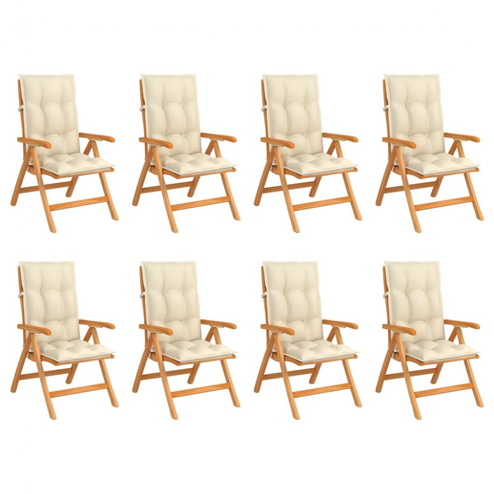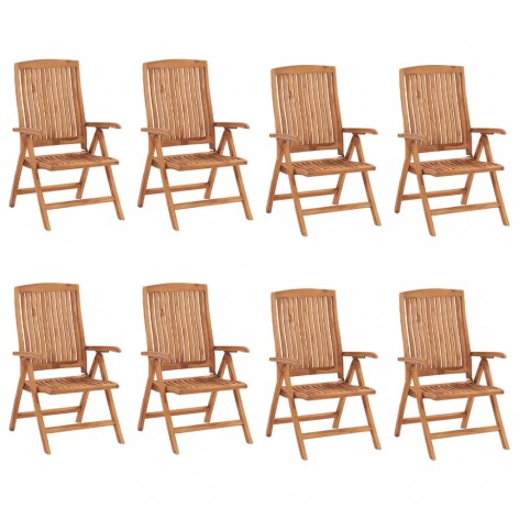 Sedie Reclinabili da Giardino con Cuscini 8 pz Massello di Teak