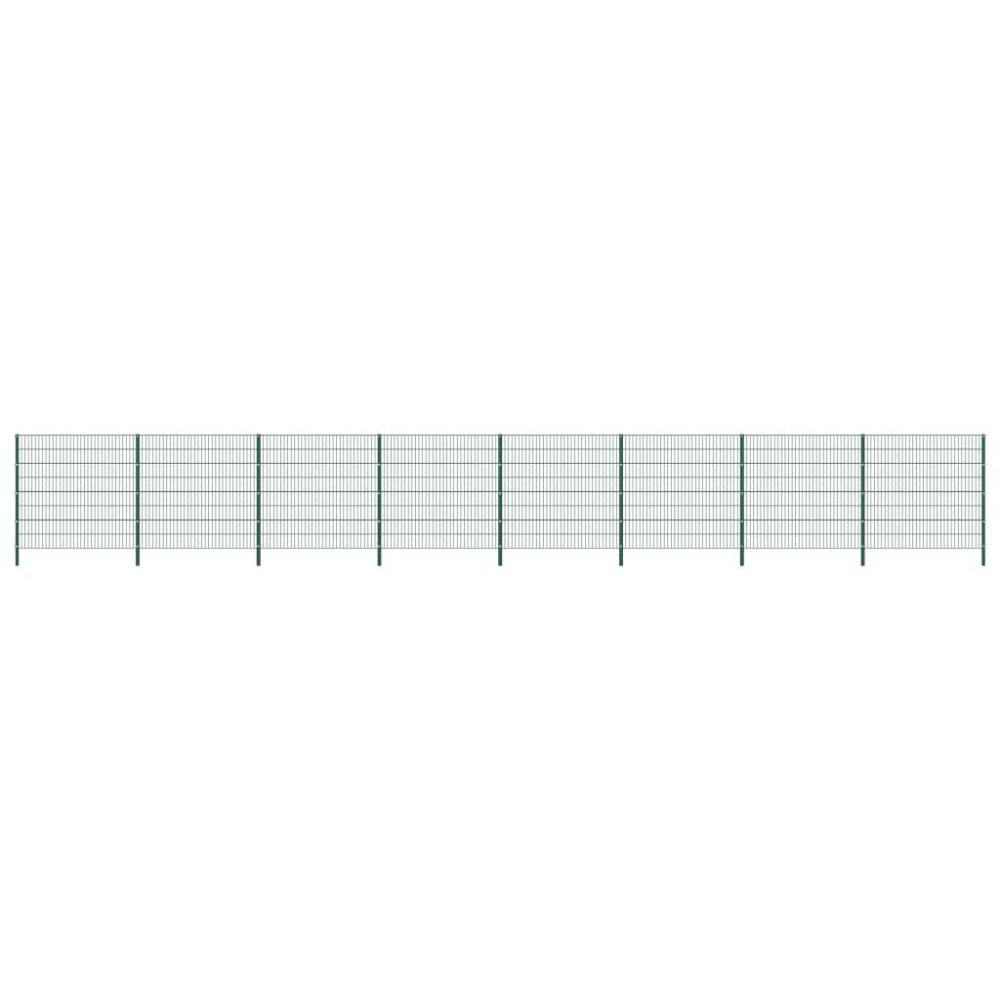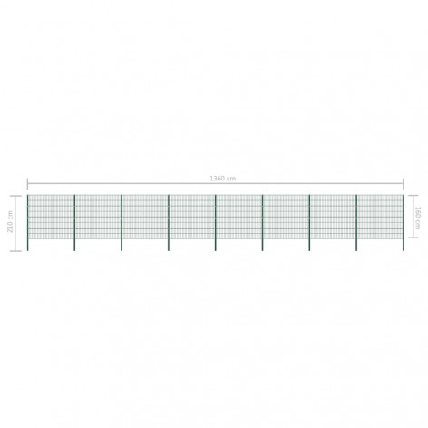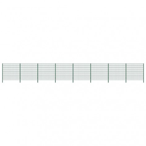 Pannello di Recinzione con Pali in Ferro 13,6x1,6 m Verde