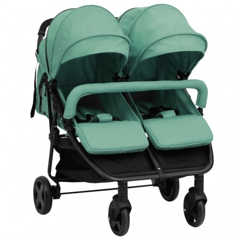 Passeggino Gemellare Verde e Nero in Acciaio