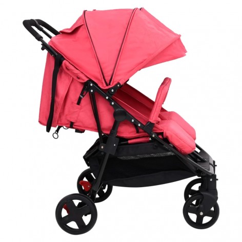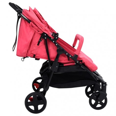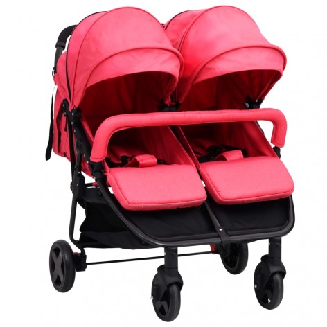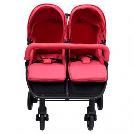 Passeggino Gemellare Rosso e Nero in Acciaio
