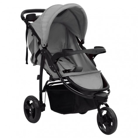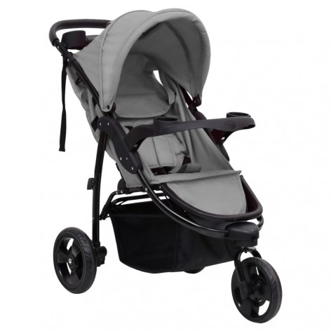 Passeggino a 3 Ruote Grigio Chiaro e Nero in Acciaio