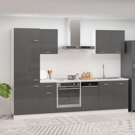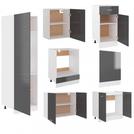 Set Armadi da Cucina 7 pz Grigio Lucido in Truciolato