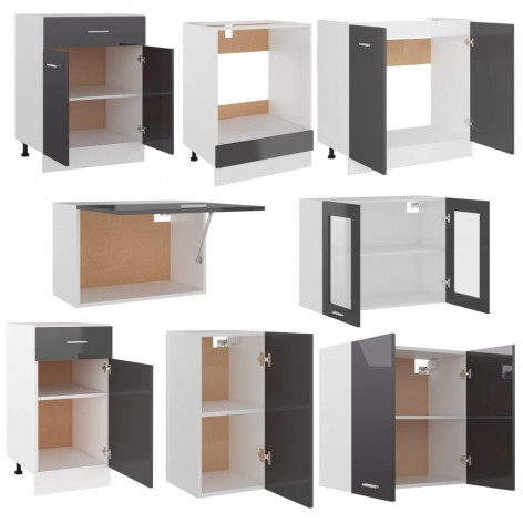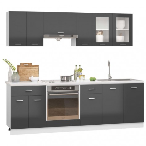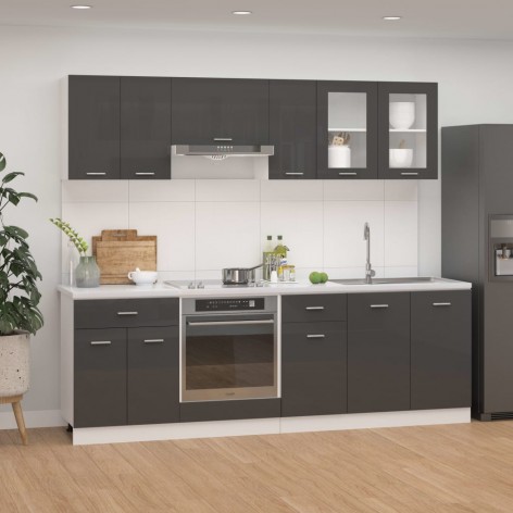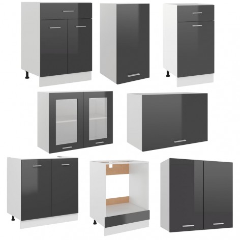 Set Armadi da Cucina 8 pz Grigio Lucido in Truciolato