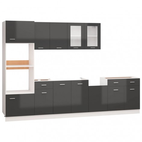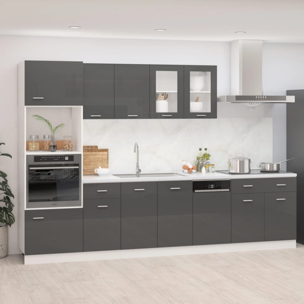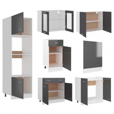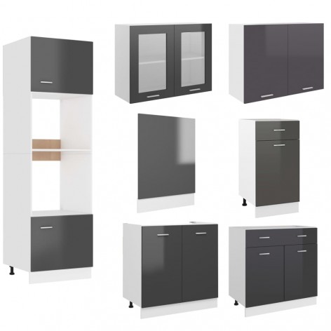 Set Armadi da Cucina 7 pz Grigio Lucido in Truciolato