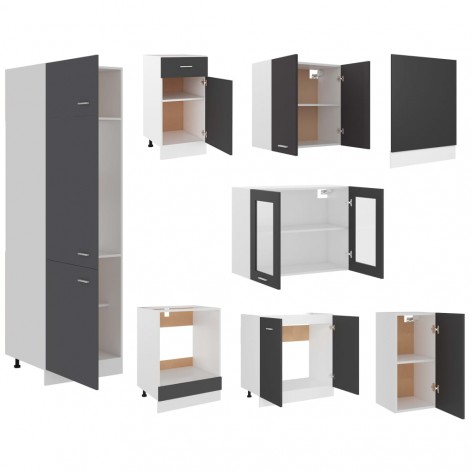 Set Armadi da Cucina 8 pz Grigio in Truciolato