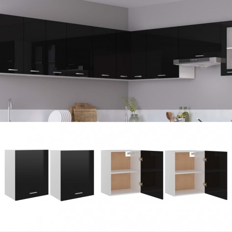 Armadi Sospesi 2 pz Nero Lucido 50x31x60 cm in Truciolato
