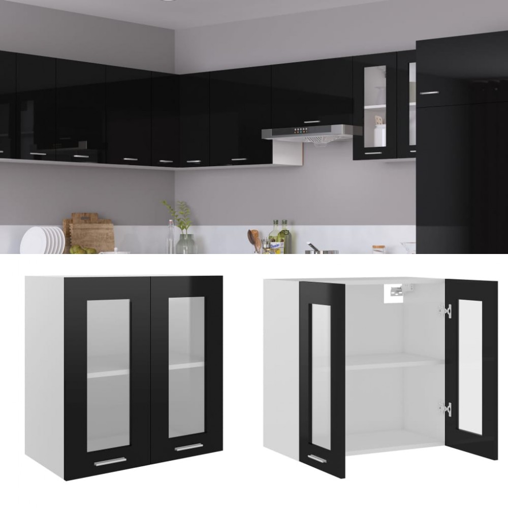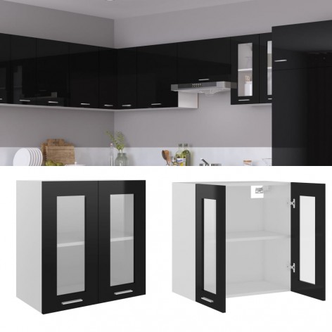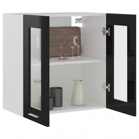 Armadio Sospeso con Vetro Nero Lucido 60x31x60 cm in Truciolato