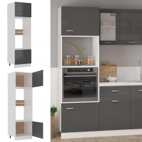 Armadio per Microonde Grigio Lucido 60x57x207 cm in Truciolato